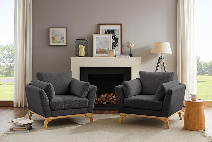 Large-Sized Accent Chair, Thick Cushion Bedroom Reading Chair, Comfortable Living Room Single Sofa, Boucle Dark Gray