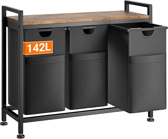 - Robust & Stable: This laundry organizer is made of particleboard and iron, which offers reliable strength and stability. The adjustable feet and anti-tip kits help prevent unwanted wobbles or accidental tipping.
