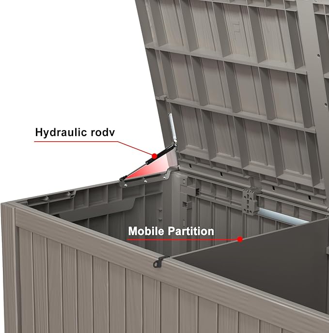 - EASY TO USE: The deck storage box is designed for convenience with built-in handles on both sides, allowing easy lifting and movement. Plus, for added security, you can install a password lock/small lock (not included) on the top cover