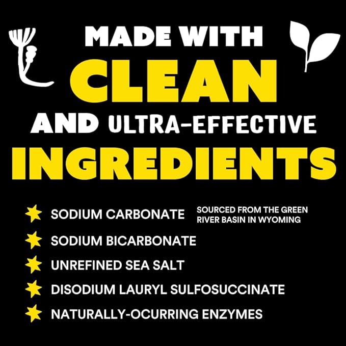 - POWERFUL CLEAN: Active cleaning ingredients capable of tackling your dirtiest loads of laundry. Quick dissolving in all water temperatures, removes stains and rinses clean with no residual chemicals, artificial dyes or fragrances left on clothes - when we say clean, we mean it!