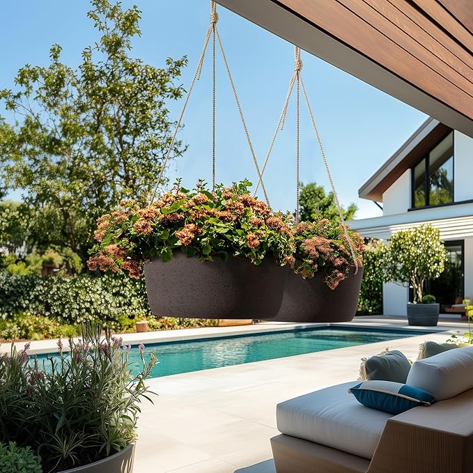 - EFFORTLESS CUSTOMIZATION: Designed to withstand the elements, this 0.3" wall-thick planter comes with adjustable hanging ropes and sturdy iron hooks for easy, personalized configuration