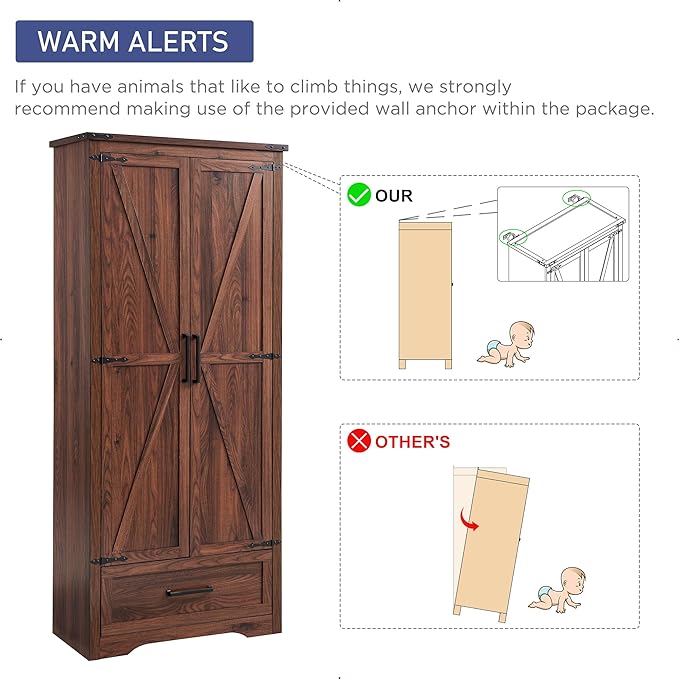 - Note Before Purchase: Our 72-in wooden pantry features single full-board construction for the main structure,—not pieced together like many other products on the market—making it more durable. However, rough handling during shipping can sometimes cause damage to these long boards. If you encounter any issues, please reach out for a quick and easy replacement