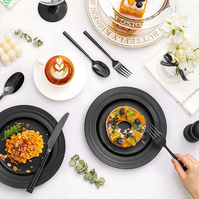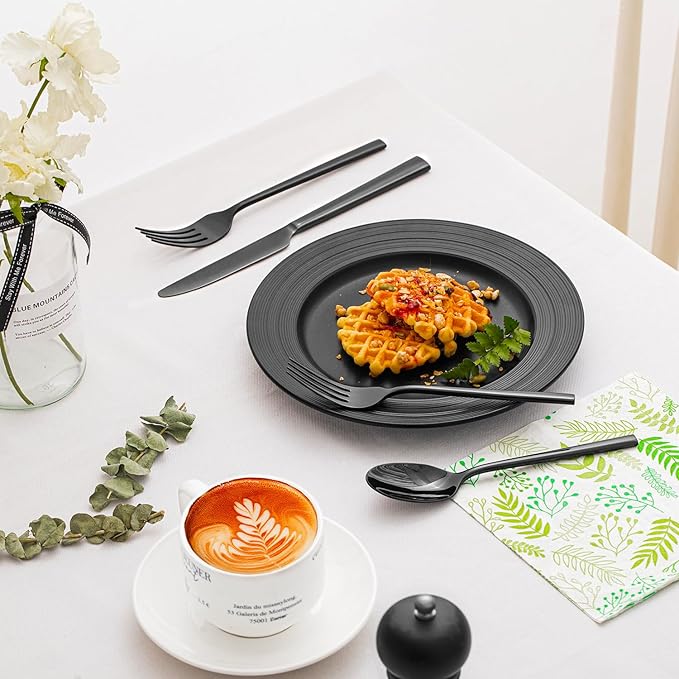 KINGSTONE Black Silverware Set, 40-Piece Forged Flatware Set Cutlery Set Premium Stainless Steel, Service for 8, for Kitchen, Home, Wedding, Party, Mirror Polished and Dishwasher Safe