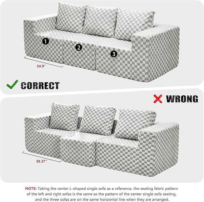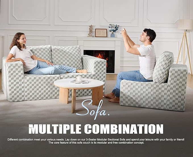- Flexible Modular Design: The core feature of this modular sectional sofa is its modular and free combination concept. The cleverly designed sofa modules allow you to easily piece and rearrange them to create possible layouts based on their spatial needs and aesthetic preferences. Whether you want a single sofa or loveseat sofa or a 3-seater, you can adjust it however you like.