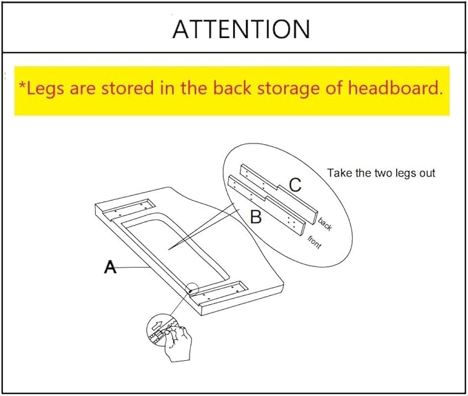 - Easy Assemble: Tools included for easy assembly . Remind: Legs are stored in the back of headboard,unzip to find them.