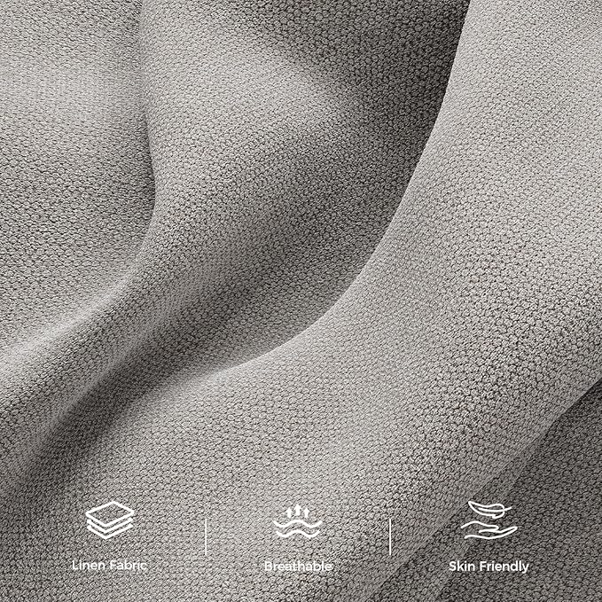 89” Futon Sofa Bed, Linen Comfy Futon Couch Bed with 2 Square Pillows, Convertible Sleeper Sofa with Adjustable Backrest& Armrests, Modern Loveseat Sleeper for Living Room, Bedroom, Light Gray