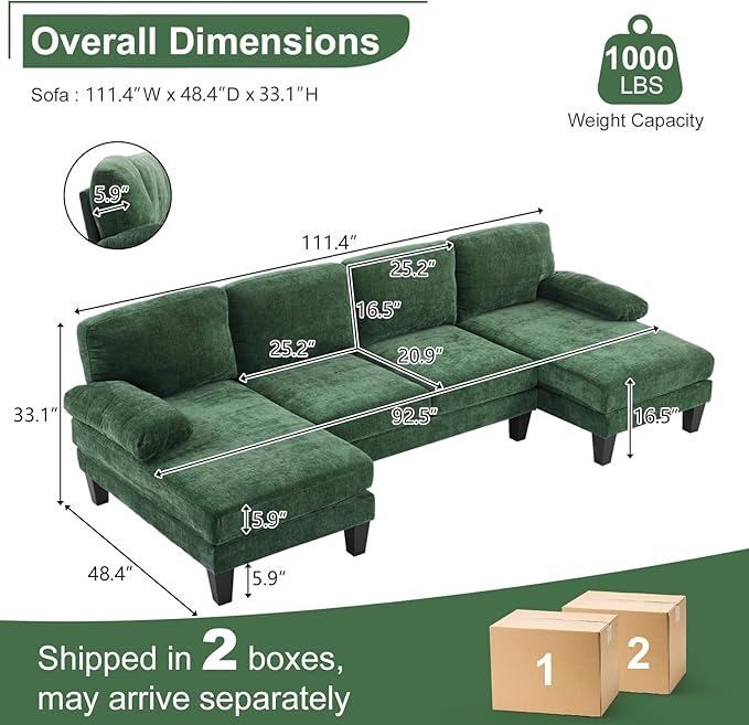 - Product Dimensions : 48.4"D x 111.4"W x 33.1"H