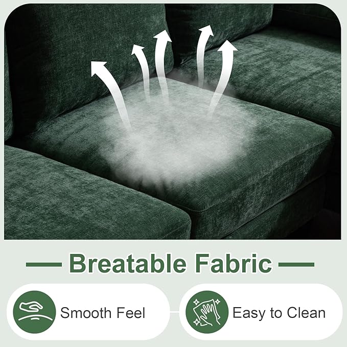 - SOFT & COMFORTABLE - When seated on the couch, you will experience the support of the high-resilience sponge in the seat and back. Occasionally, you can take a nap on the chaise. Covered with breathable fabric, this four-seat sofa offers physical and mental comfort.