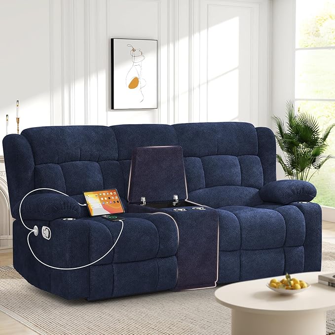- CONVENIENT DESIGN: Our home theater recliner sofas come with a rechargeable USB port, which means you can charge your electronic devices at any time without leaving the recliner, a feature that is especially useful for those who like to use their phones or tablets while watching movies or playing games. The INTERTEK-tested and certified power port is safe and reliable, so you can use it with confidence. With cup holders and pockets on both sides of the recliner, there's convenient space to store drinks, snacks, game consoles, remotes and other essentials.