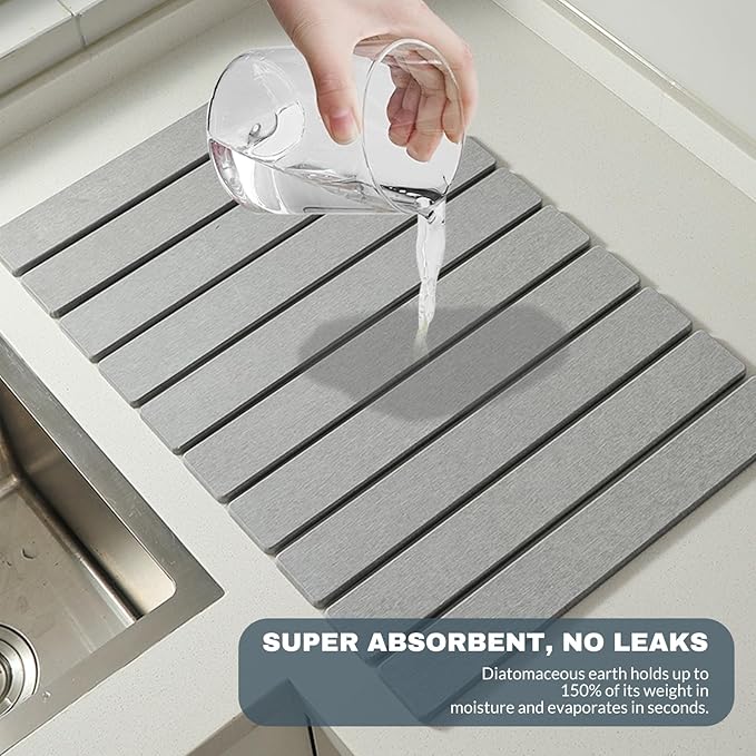 - Large Stone Drying Mat for Kitchen Counter - Crafted from advanced diatomaceous earth, our dish drying stone mat ensures your countertop stays dry and clean, it's a perfect addition to your kitchen sink accessories