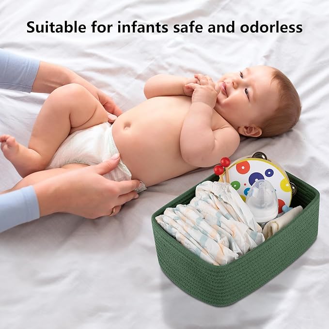 - [Premium Cotton Material]:Our cute baby storage baskets are made of high quality cotton hand-woven by workers, soft and odorless, no sharp edges and corners, very friendly to babies and pets, a good choice for baby-sitting baskets and dog or cat toy baskets