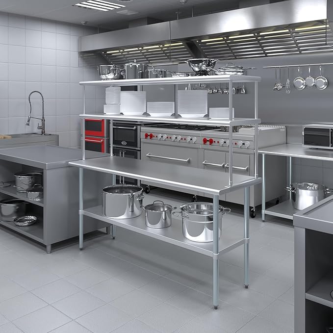 AmGood Stainless Steel Double-Tier Shelf | Work Table Overshelf | NSF Certified | Fits Over Tables | Many (72 in. Long x 18 in. Deep)