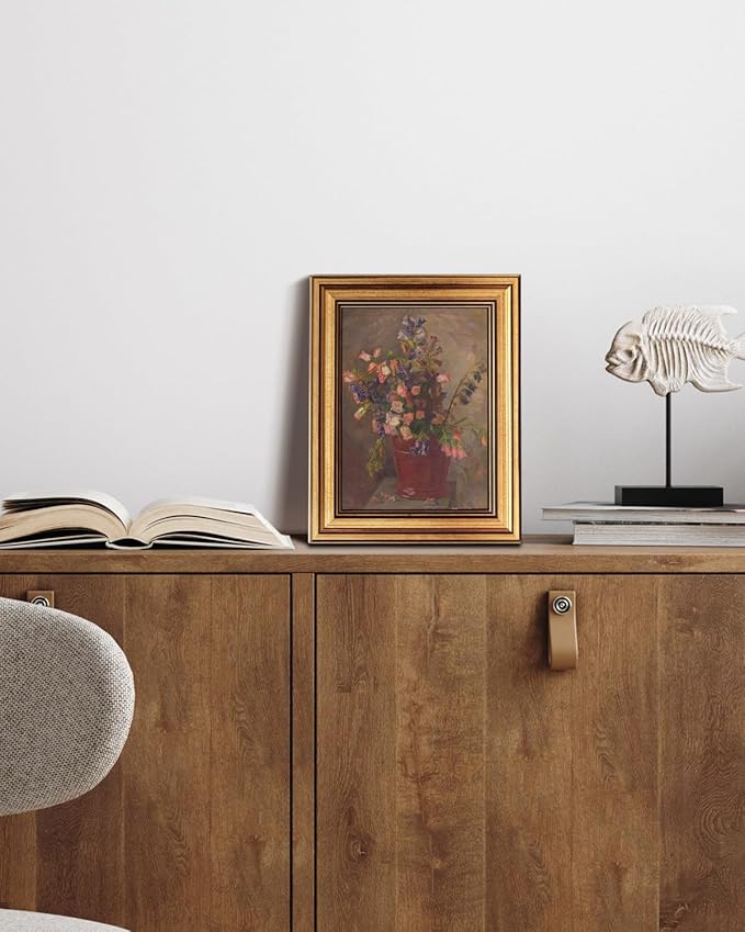 HUARCEY Gold Framed Vintage Wall Art for Living Room, Flower Painting Canvas Prints Shelf Decor for Kitchen, Aesthetic Room Decor Bedroom Wall Art, Floral Artwork for Friends or Family 8"x10"