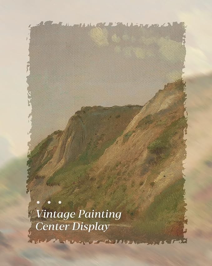 - VINTAGE COASTAL WALL ART: This painting wall art showcases a coastal landscape with a sense of tranquility and natural beauty. The soft tones of the sky harmonize beautifully with the greens and browns of the coastline, conveying a serene ambiance, possibly at dusk or dawn. The golden frame adds a touch of classical elegance, complementing the artwork's warm tones. This piece is ideal for minimalist or nature-inspired interiors, enhancing the room's harmony and artistic atmosphere