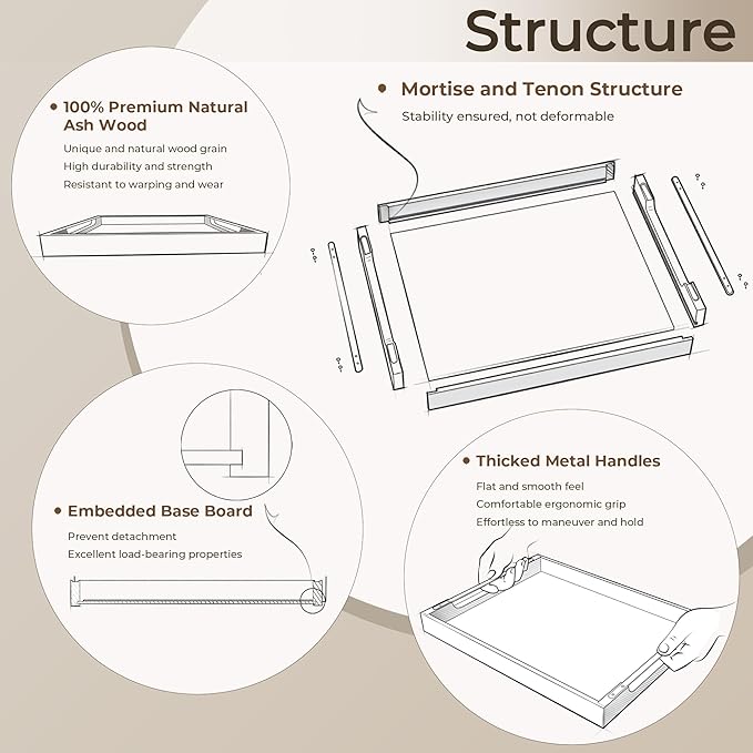 - Premium Timber & Crafting: The ottoman tray is crafted from natural ash wood, which has a beautiful natural wood grain. Perfect for use as a serving tray, ottoman tray, or decorative tray for your coffee table. Our stringent manufacturing standards guarantee a well-crafted, robust wood serving tray that will endure for years without chipping