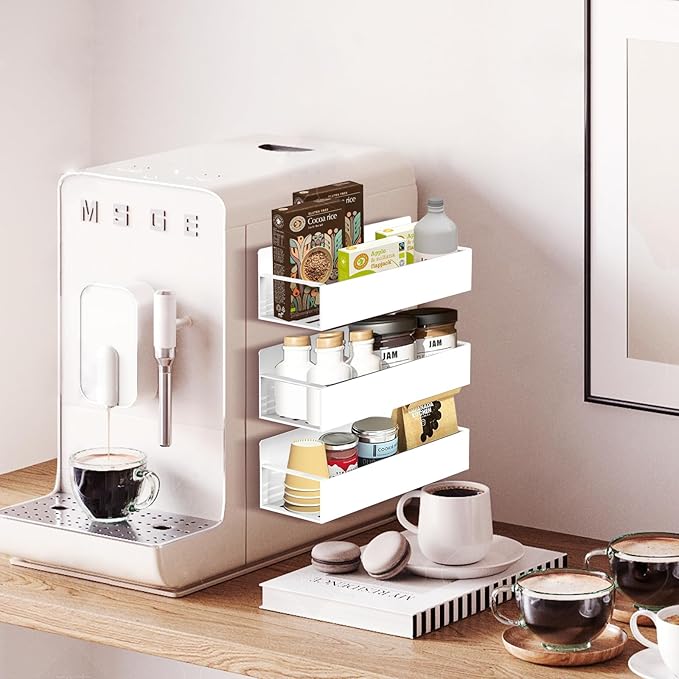 - 【Works extremely well! 】Makes using your most frequently used items close by. you will love this Magnetic Spice rack & organizer to be put on the refrigerator,you can space the 4 racks organizer however you like . It's right at your fingertips, no searching the cabinet. This is much more organized for your way of cooking.