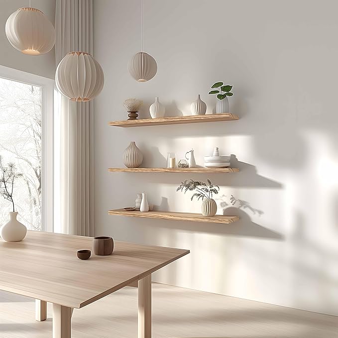 36 Inch Floating Shelves for Wall Rustic Light Wood Wall Shelves for Bedroom Set of 4