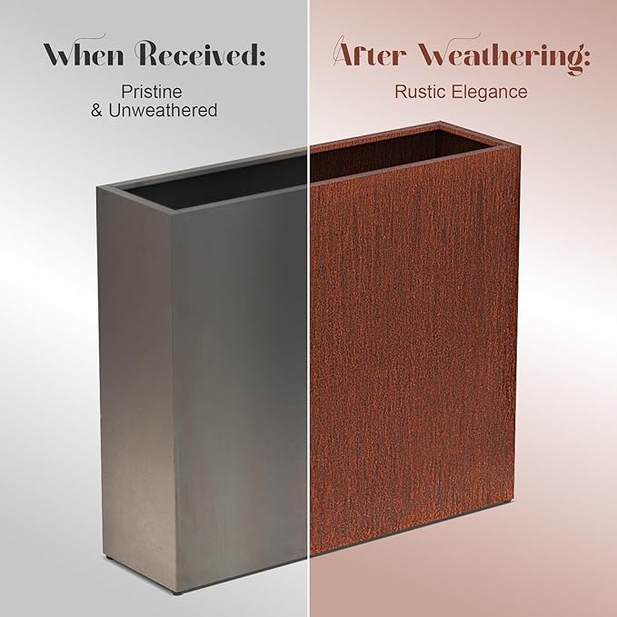 - Durable and Weather-Resistant: Built to last, corten steel is highly resistant to corrosion and damage from harsh weather, ensuring the outdoor planter box remains strong and functional for years