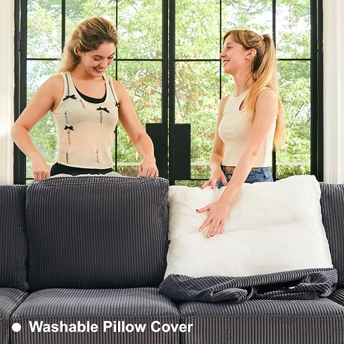 - Luxurious Comfort and Style: The Belffin modular sofa boasts sleek design elements and is upholstered in high-quality corduroy fabric, offering a plush feel and a rich look. Its softness and shine complement the durable cushions, ensuring a cozy and inviting seating experience.
