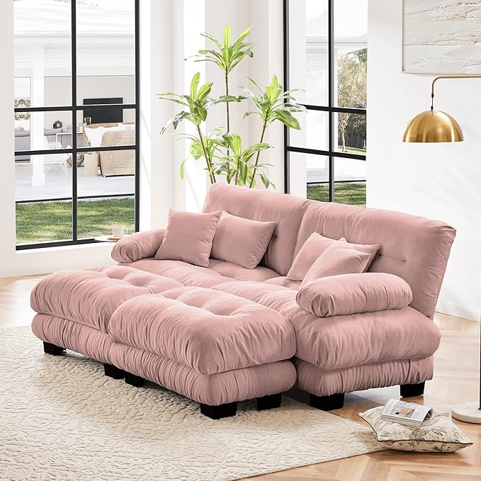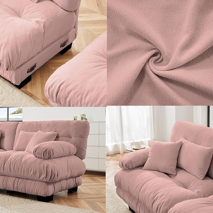 Loveseat Modular Sectional Sofa, U Shaped Couch with Ottoman, Cloud Couch Sectional Couch Home Sofa Living Room Oversized Couch Deep Seat Couch with Round Bolster Armrests 4 Pillows(Pink)