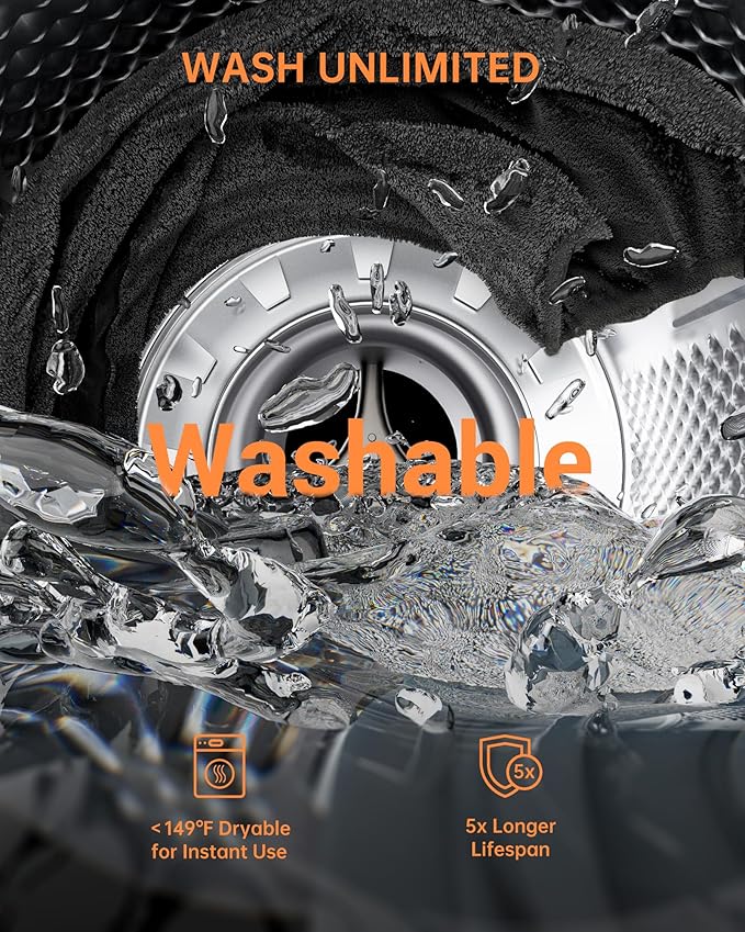 - More Convenient to Clean: The innovative nano heating material, with a structural strength 100x that of steel, ensures exceptional durability. Unlike traditional electric heating pad, it won’t get damaged during washing or drying, and even pets can hardly damage it. Clean and dry with confidence (recommended drying below 149°F).