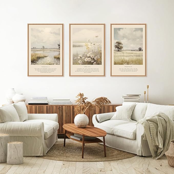 - 【Scripture Christian Wall Art】The Size of the Christian framed canvas wall art set is: 24x36 inchx3pcs (60x90cmx3pcs).Vintage religious Poster Prints artwork use high-quality environmentally friendly ink and high-quality canvas, and use the industry's top printers for layered spraying, the colors are delicate and the transition is natural.bring you visual enjoyment.
