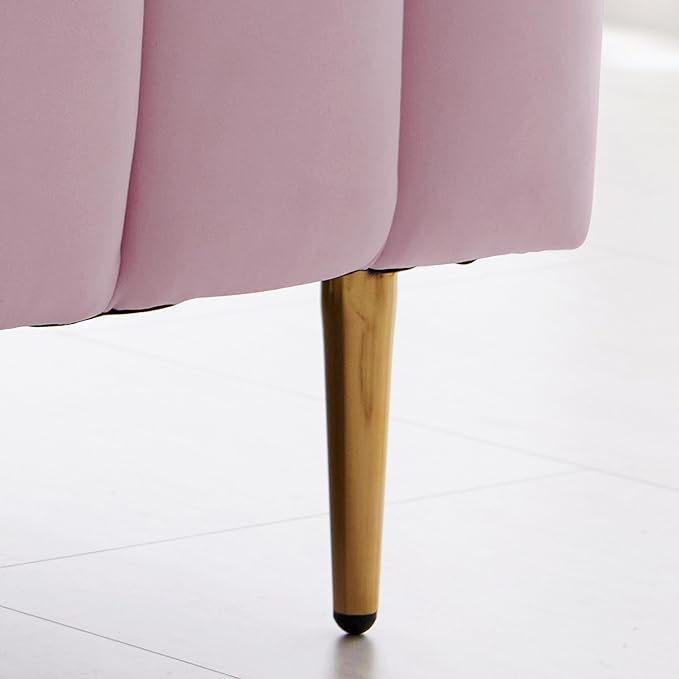 Livinia Twin Size Elton Velvet Platform Bed, Upholstered Bed Frame with Vertical Channel Tufted Headboard Footboard, Strong Wood Slats, No Box Spring Needed, Pink (Twin)