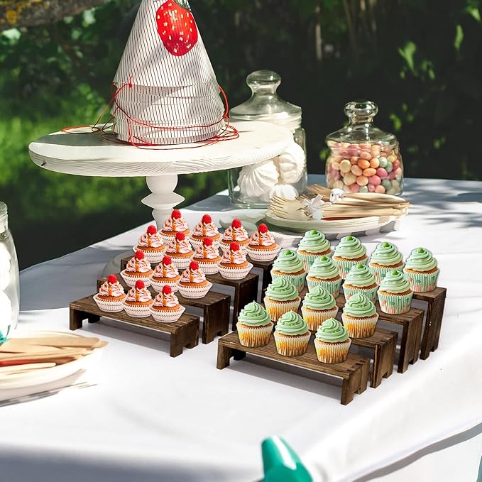 - 【Excellent Gift for Man/Woman】🎁:This 4 tierd 2pack of 8 pieces wooden cupcake display stands suit for festivals, birthdays, party,exhibition or other important days such as Father’s Day, Mother’s Day or Christmas Day!The dessert wood risers are 100% solid wood,so they can be as table display stand for vendors event gifts for your relatives or friends of man or woman and used everywhere.
