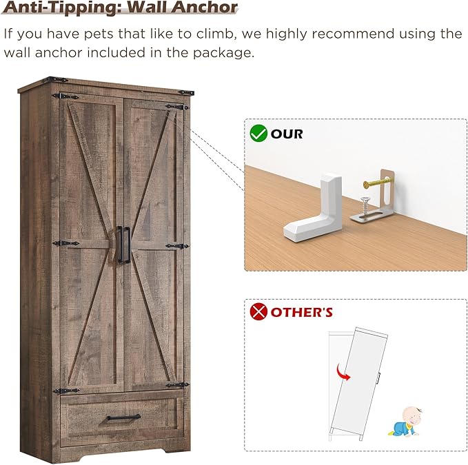 - Sturdy and Safe Design: Crafted from high-quality engineered wood and metal, this cabinet is built for stability and longevity. It includes an anti-tip safety kit for secure wall mounting, ensuring stability even in households with pets. Enjoy peace of mind knowing your family’s safety is a priority