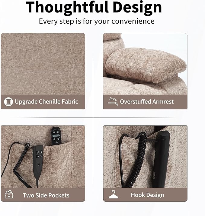 - What's You Get More: This power lift chair only has one package, so you don't have to spend a lot of time waiting. The armrests of the chair are installed through zippers, which are soft and elastic, providing excellent support.