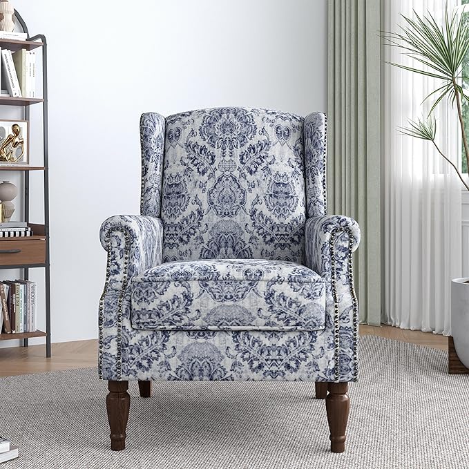 - Modern Design:This mid-century modern pushback chair features a classic wingback design with a floral and bird pattern on the fabric that adds a more upscale touch to the decor for visual enjoyment! Place it in your studio to enhance office comfort; by the fireplace for casual holiday time; or in your bedroom for cozy lounging.
