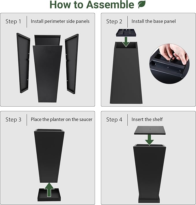 - Durable&Sturdy: The taper planter for indoor plants are made of thick steel with powder-coated surface, giving the surface a premium metallic texture and making them rust and corrosion resistant, adapting to various weather conditions and is suitable for indoor and outdoor use(Note: Metal planter boxes are assembly required, you can watch the assembly video on the detail page)