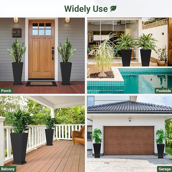 - Wide Application: The tall plant pot is suitable for outdoor/indoor decoration and can be placed in gardens, decks, courtyards, balconies, living rooms, entrances, terraces or front porches; This tall outdoor planters set of 2 can add different aesthetics to the environment by combining different natural and artificial plants