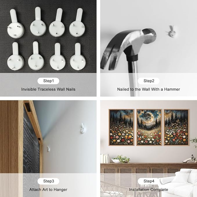 - 【Eco-Friendly and Durable】The Mystical Moon framed Wall Art is made from large thickened canvas material, ensuring their long-lasting and sturdy nature. The printing process involves high-quality inks that are resistant to fading over time. Every aspect of the creation, from the materials used to the production process, adheres to the highest standards of quality.