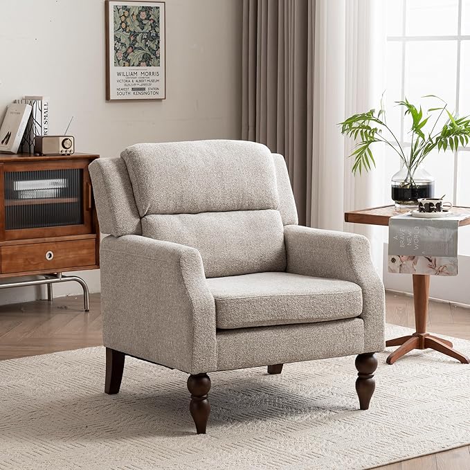 - Wider & Larger Accent Chair - This comfy upholstered armchair is ergonomically designed to provide a comfortable experience. The high backrest(17.3” W) and widened seat (21.6” W) with thick foam padding provide optimal lumbar support and cloud-like softness—ideal for reading, working, or relaxing. Multi-Color Options: Match your existing furniture with 4 earthy tones