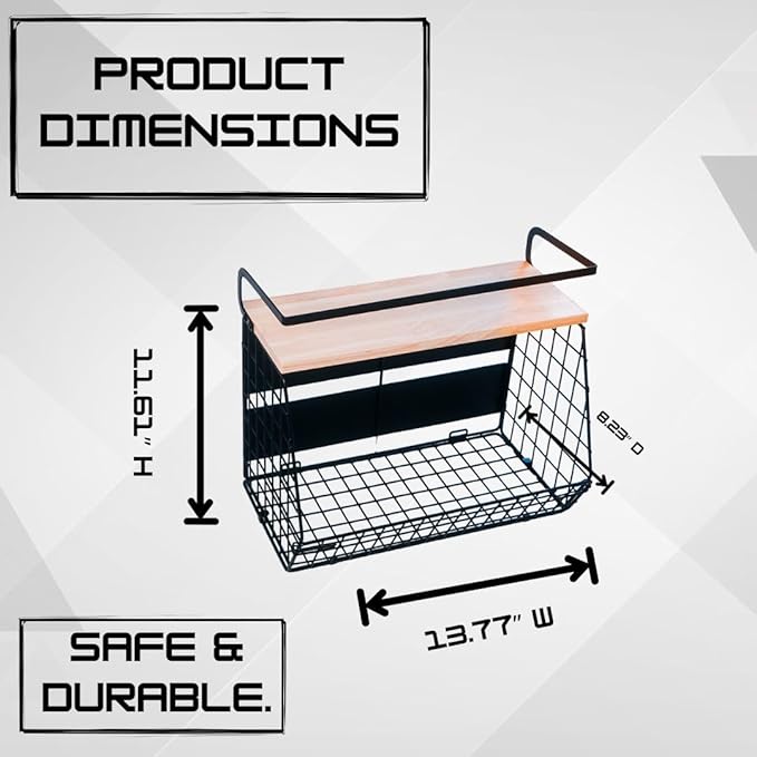 - ✅ Generously Sized to Maximize Storage – 13.77” W x 11.61” H x 8.23” D With deep storage capacity and a wide frame, this shelf fits large containers, multiple spice bottles, or even paper towel rolls. The sleek profile allows it to fit seamlessly in tight spaces while still offering substantial storage volume to keep countertops clutter-free.