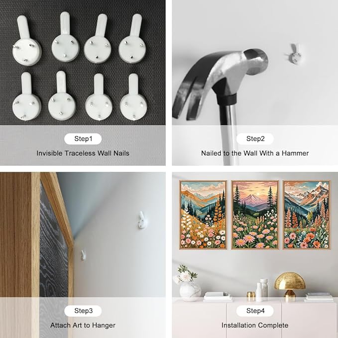 - 【Easy To Hang】The abstract natural landscape framed picture set is easy to hang, ready to hang, it is finished with metal hooks and non-trace nails. It will only take about 5 minutes for you to hang it up.