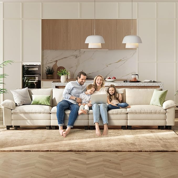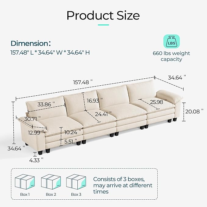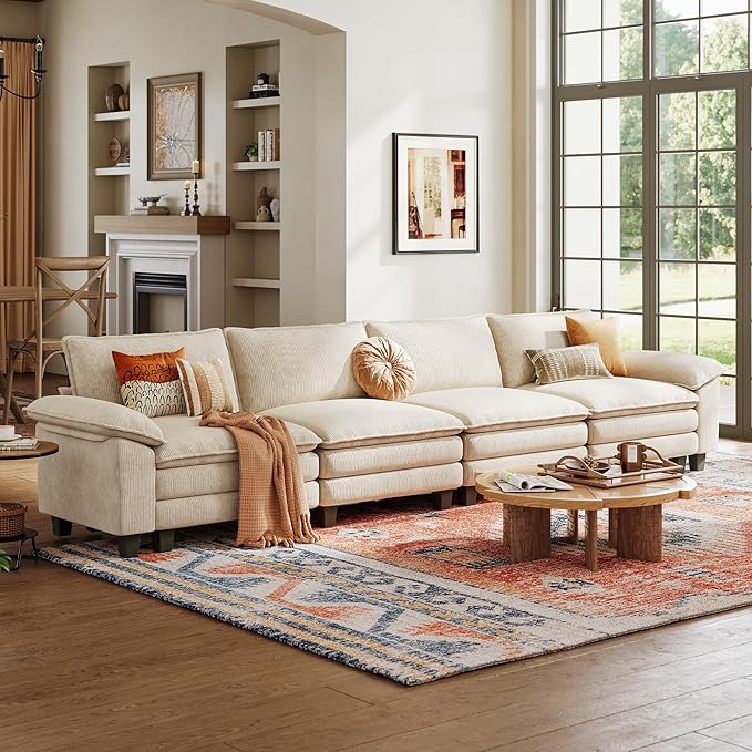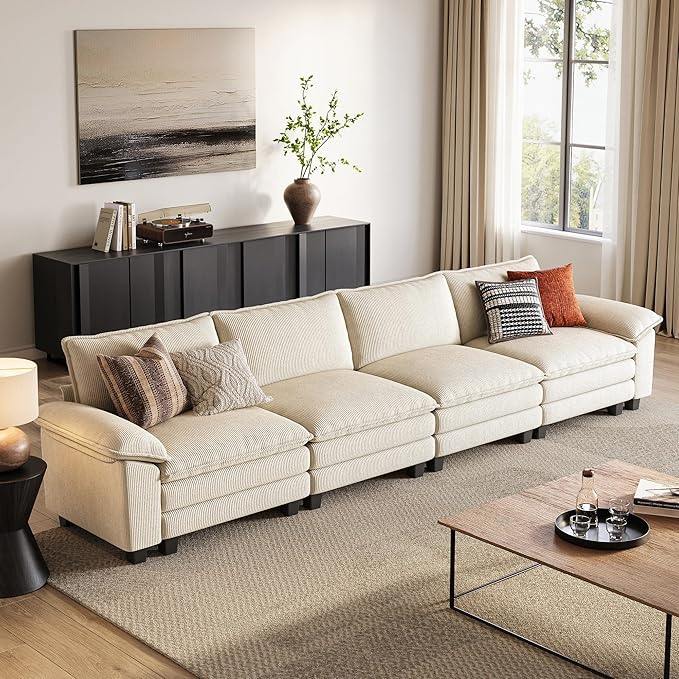 LINSY HOME Oversized Sectional Sofa - 157'' Oversized Corduroy Cloud Couch Deep Seat Modular Sofas Soft Modern Comfy Couches Furniture for Living Room Apartment Office, Beige