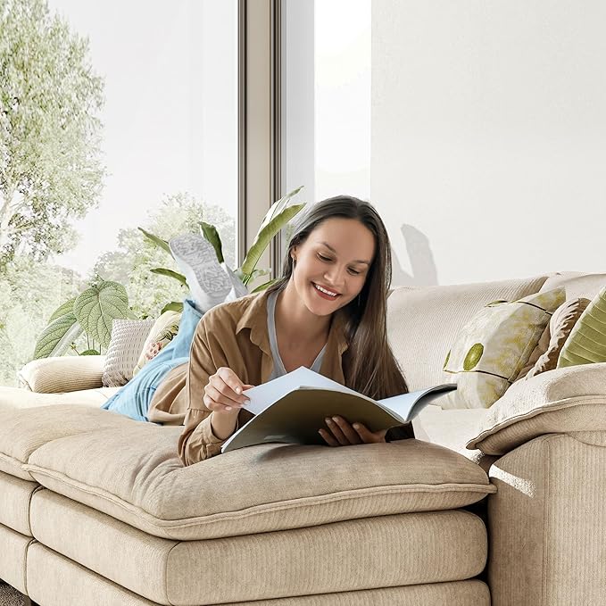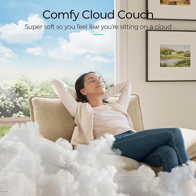 - Comfy Double-layer Seat Cushion Cloud Couch: Experience cloud-like comfort with our double-layer seat cushion. The combination of high-density cotton, sponge, and pocket springs provides superior softness and support, making every seat very soft. This sofa is designed to offer ultimate relaxation, whether you're lounging alone or hosting guests