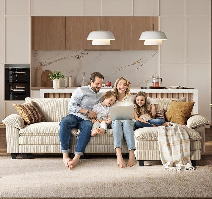 - Luxury Corduroy Fabric: The LINSY HOME sofas are made of luxurious high-quality corduroy fabric, which is comfortable and breathable, with rich texture and elegant appearance. Modern corduroy fabric can not only enhance the beauty of your life and bring fashionable and luxurious decoration to your space but also ensure long-lasting comfort and easy maintenance