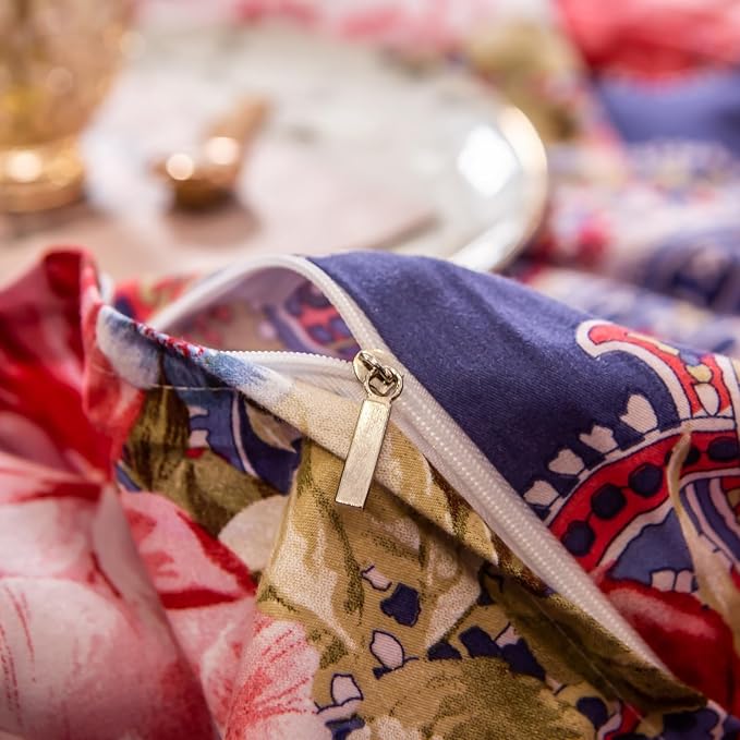 ABREEZE Colorful Floral Duvet Cover Queen 100% Cotton Flower Duvet Cover 3 Piece Set 1 Multi-Colored Damask Paisley Duvet Cover with Zipper Ties 2 Pillowcases Luxury Soft Peony Print Bedding Set