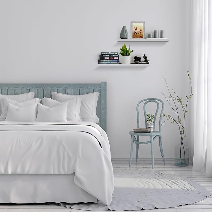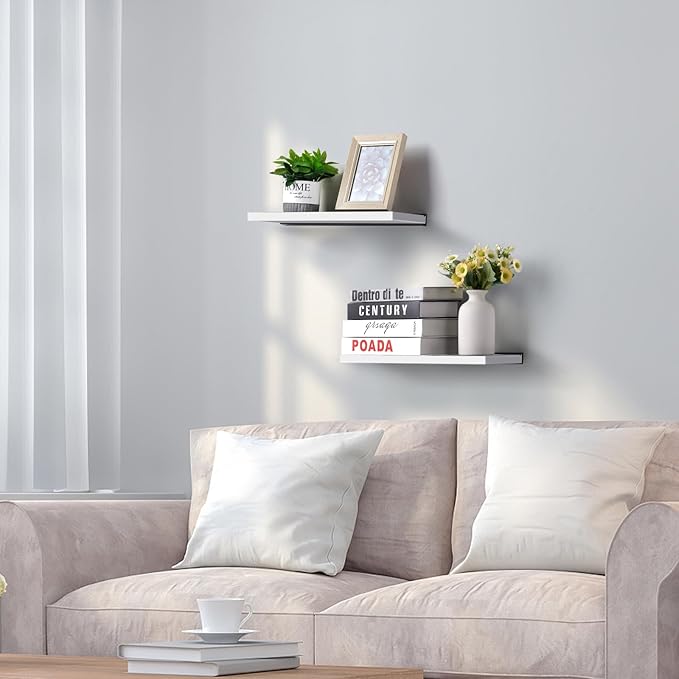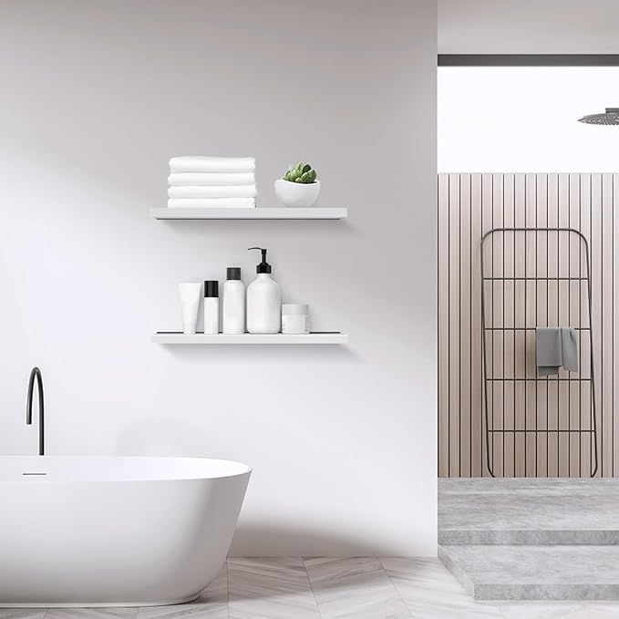 Meangood Floating Shelves White 17 inch Wall Mounted Natural Bamboo Wood Wall Storage Shelves for Bedroom,Living Room,Bathroom, Kitchen(Set of 2)