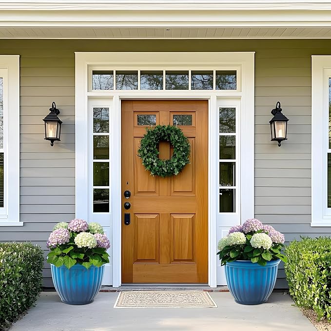 - Elegant and Superior Texture:These large outdoor plastic planters feature an elegant and modern design. The faux gradient ceramic look, combined with delicate 3D textures, makes them resemble exquisite faux ceramic planters. They add an artistic ambiance to your front porch, patio or living room.