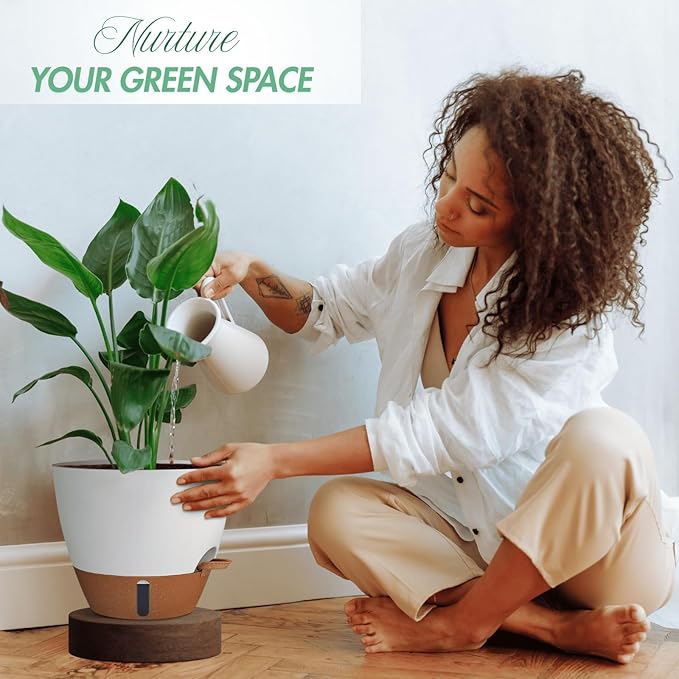 - 【Self Watering Planter for Busy Plant Parents】8/10/12-inch self-watering pots with cotton wicks auto-feed plants from the detachable reservoir. Transparent water window shows levels at a glance — maintains 5-11 days of moisture. Vacation-proof your greens, no green thumb required easy plant self watering pot.