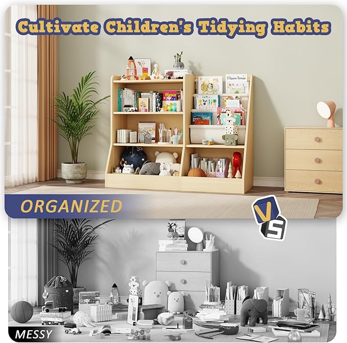 - Multi-Functional Use --- This Kids Wooden Bookshelf is suitable for bedroom, kindergarten, classroom, living room and other multiple places; which can create a comfortable, interesting reading corner for child to cultivate. This toddler bookshelf can help children to tidy up their room neatly, which can be a good way to develop children's independence and organization.