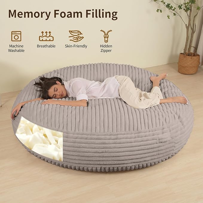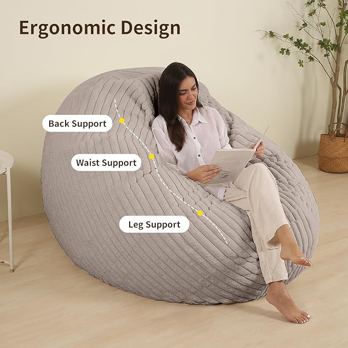 - HIGH RESILIENCE MEMORY FOAM: The bean bag chair is filled with high resilience memory foam to provide you with the best comfort experience. After opening the compression package, you can shake the whole giant beanbag repeatedly to quickly restore it to perfect shape