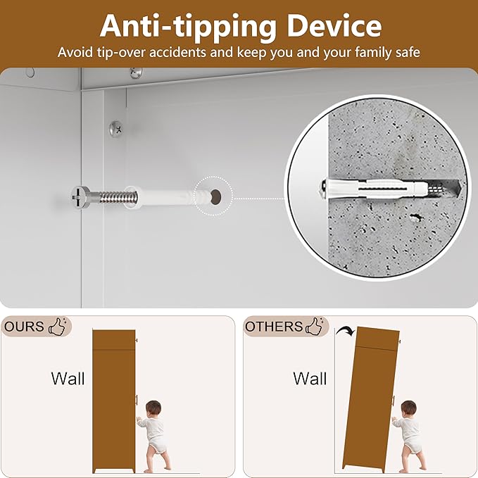 - [PRACTICAL DESIGN] Adjustable shelves allow you to customize storage space. Anti-tipping device will keep you and your family safe. The leveling foot keeps it standing smoothly.