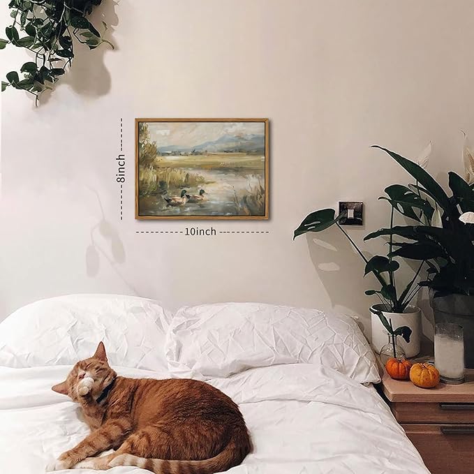 Floating Framed Canvas Wall Art, Vintage Mallard Duck Oil Paintings Print, Countryside Art Wildlife Nature Pond Wall Decor for Living Room, Bedroom, Office, Rustic Decor 8x10 inch