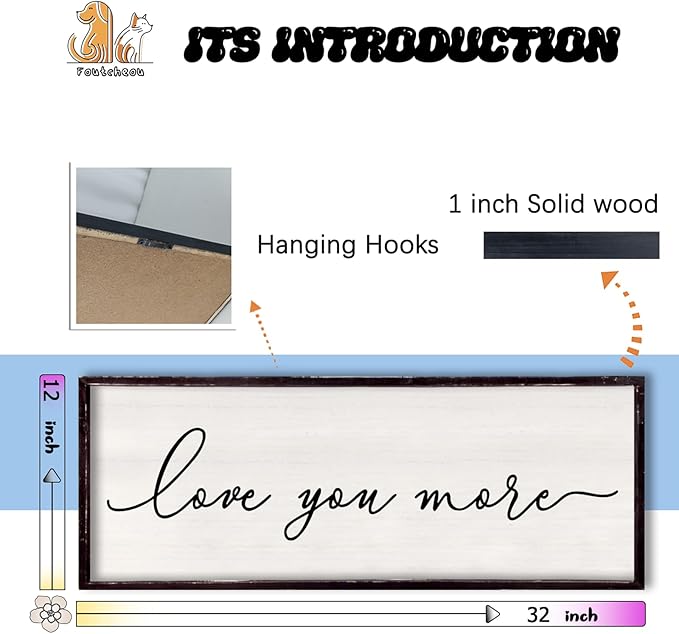 Love You More Above Bed Wall Decor Sign 32"×12" for Master Bedroom Over Bed Large Simple Wood Framed Hanging Wall Art (Black)
