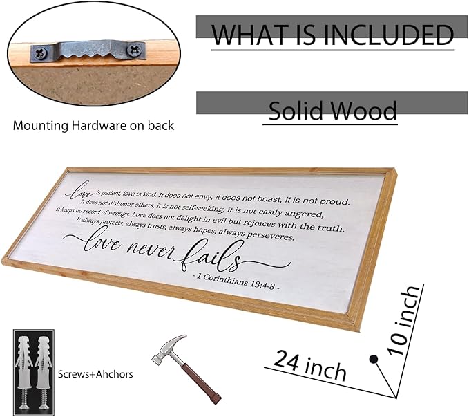 - PERFECT CRAFT: The home decoration sign frame is hand-dyed, and the middle part of the font is printed with UV ink. The sign measures 24 x 10 inches and is extremely lightweight at 1.55 pounds and can be hang easily.